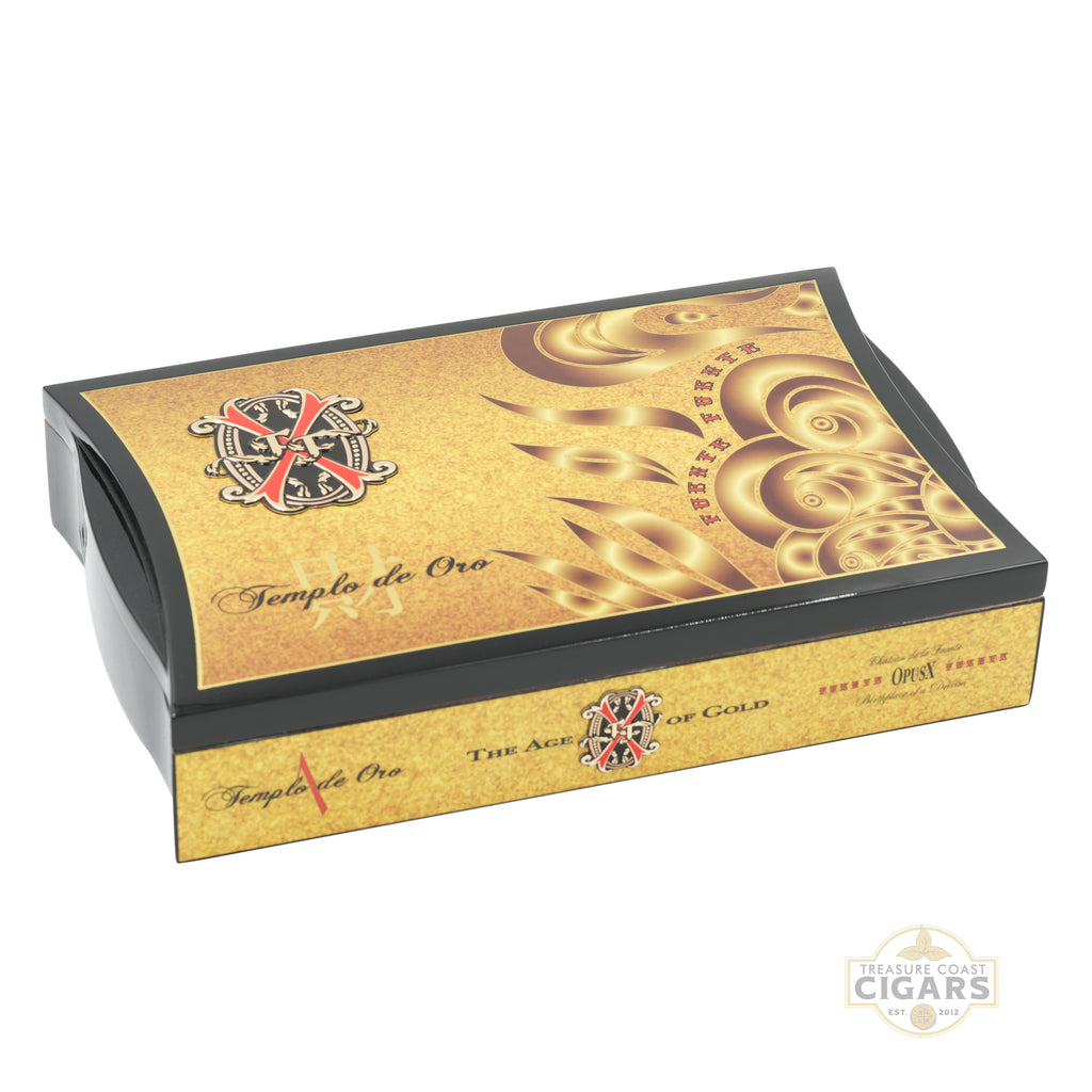 The Arturo Fuente Opus X Templo de Oro No. 1 marks a refined new expression within the iconic OpusX portfolio. Translated as “Temple of Gold,” Templo de Oro introduces a lighter-colored wrapper and a blend that delivers a noticeably different experience while remaining unmistakably Fuente in character.