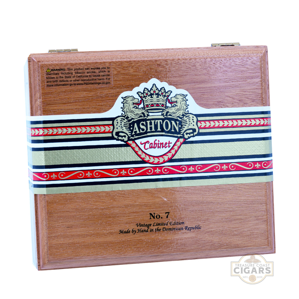 The Ashton Cabinet No. 7 is a refined toro-sized cigar that delivers the hallmark elegance of the Cabinet Series in a perfectly balanced 6.25 x 52 vitola. Draped in a flawless, seven-year-aged Connecticut Shade wrapper, this cigar offers a smooth, silky appearance and a creamy texture on the palate. Inside, a blend of expertly aged Dominican long-fillers creates a layered, complex profile that evolves gracefully throughout the smoke.