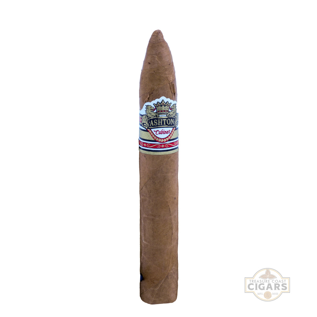 The Ashton Cabinet Pyramid is a masterpiece of craftsmanship, offering a sophisticated smoking experience in an elegant 6 x 52 pyramid format. Its tapered head and broad foot allow for a dynamic progression of flavors, drawing out the complexity of Ashton’s celebrated Cabinet Selection. Cloaked in a silky, golden Connecticut Shade wrapper, the Pyramid showcases a creamy, refined profile that’s both approachable and luxurious. Inside, an exclusive blend of Dominican tobaccos aged up to five years delivers remarkable smoothness and balance. Each puff unveils layers of cedar, toasted almonds, and subtle vanilla, harmonized with hints of spice and a delicate sweetness that lingers beautifully. The unique shape enhances the draw and burn, intensifying the flavor as the cigar narrows toward the finish. Exquisitely constructed and endlessly elegant, the Ashton Cabinet Pyramid is a connoisseur’s cigar that's perfect for moments when only the most refined indulgence will do.