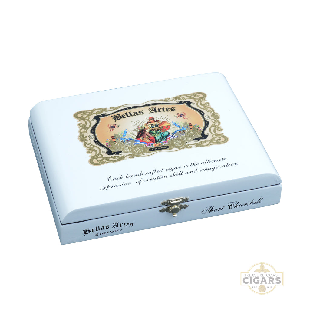 The Bellas Artes Maduro Short Churchill is a refined cigar that beautifully balances boldness and sophistication. Crafted by AJ Fernandez, this 6 x 48 vitola showcases a dark Brazilian Mata Fina wrapper, lending a rich depth of flavor from the very first draw. Beneath the wrapper lies a Mexican San Andrés binder paired with premium Nicaraguan long-fillers from AJ’s own farms, creating a smoke that is both complex and harmonious. Full bodied, the profile delivers a tapestry of espresso, dark chocolate, and earth, layered with subtle notes of spice, dried fruit, and a natural sweetness that lingers on the finish. The Short Churchill format provides an engaging experience without overstaying its welcome, making it ideal for those who enjoy a robust cigar with balance and nuance. Bellas Artes Maduro exemplifies AJ Fernandez’s artistry, offering smokers a rich, flavorful, and memorable indulgence.