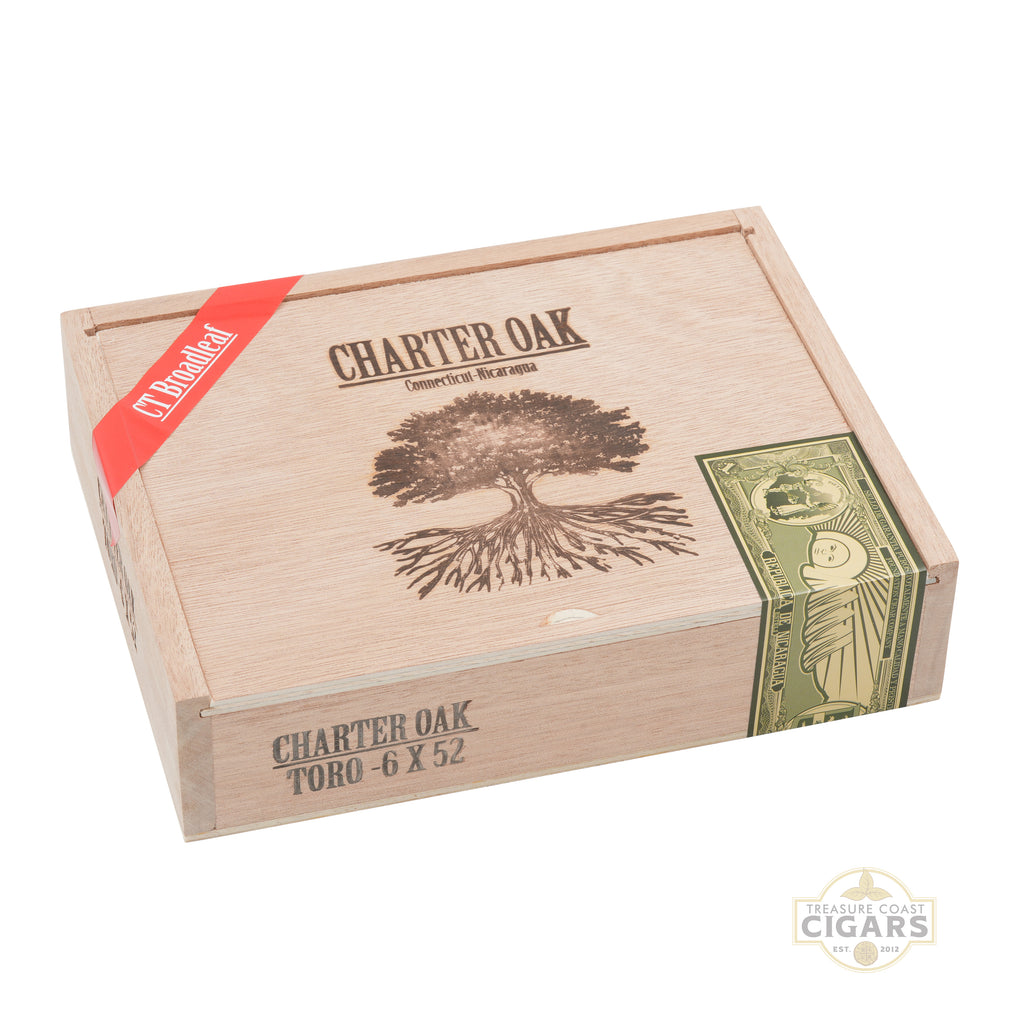 The Charter Oak Connecticut Broadleaf Toro is a bold, flavorful cigar crafted to showcase the richness of one of America’s most celebrated tobaccos. Measuring 6 x 52, this medium to full-bodied smoke is wrapped in a dark, oily Connecticut Broadleaf Maduro leaf that imparts deep flavors of cocoa, espresso, and earth, balanced by subtle sweetness and spice. Inside, a carefully selected blend of Nicaraguan fillers from Estelí and Jalapa adds strength, body, and complexity, creating a smoke that is both hearty and refined. The Toro size allows the flavors to develop slowly and evenly, providing a satisfying experience from first draw to final puff. With its flawless construction, smooth burn, and remarkable depth, the Charter Oak Connecticut Broadleaf Toro exemplifies quality at an affordable price. Produced at Tabacalera AJ Fernandez, it’s a cigar that delivers tradition, richness, and accessibility all in one unforgettable package.