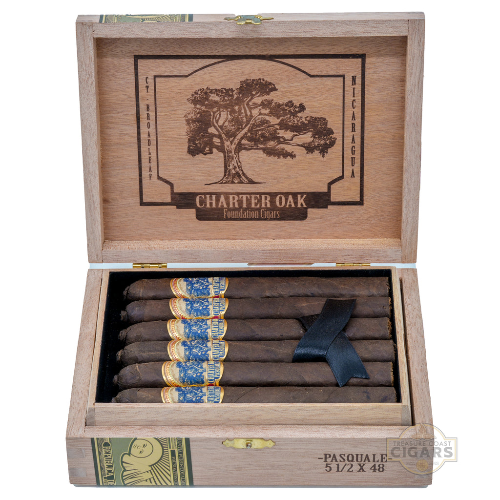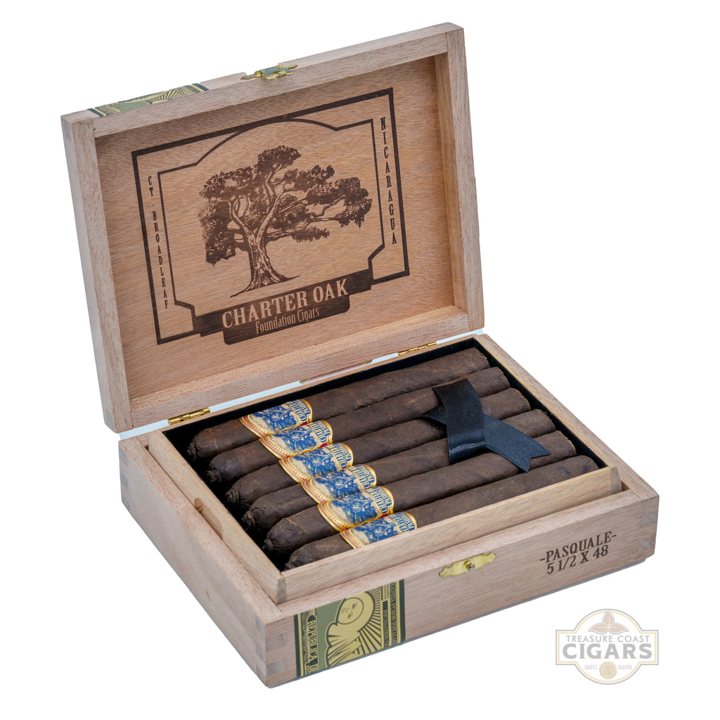 The Charter Oak Pasquale Connecticut Broadleaf is a bold and flavorful tribute to Nick Melillo’s grandfather, Pasquale, showcasing the depth and richness of one of America’s most prized tobaccos. Draped in a dark, oily Connecticut Broadleaf wrapper, this cigar delivers a robust smoking experience with layers of character. Inside, a blend of select Nicaraguan tobaccos provides strength, balance, and complexity, producing notes of dark chocolate, espresso, earth, and leather, accented by a natural sweetness and touches of black pepper. Full-bodied yet remarkably smooth, the Pasquale is designed for those who appreciate intensity without sacrificing refinement. Its expert construction ensures a consistent burn and satisfying draw from start to finish. As part of the distinct Charter Oak Especiales line, the Pasquale stands as both a personal homage to family heritage and a masterclass in Broadleaf craftsmanship, offering aficionados a rich and rewarding cigar worthy of slow, deliberate enjoyment.