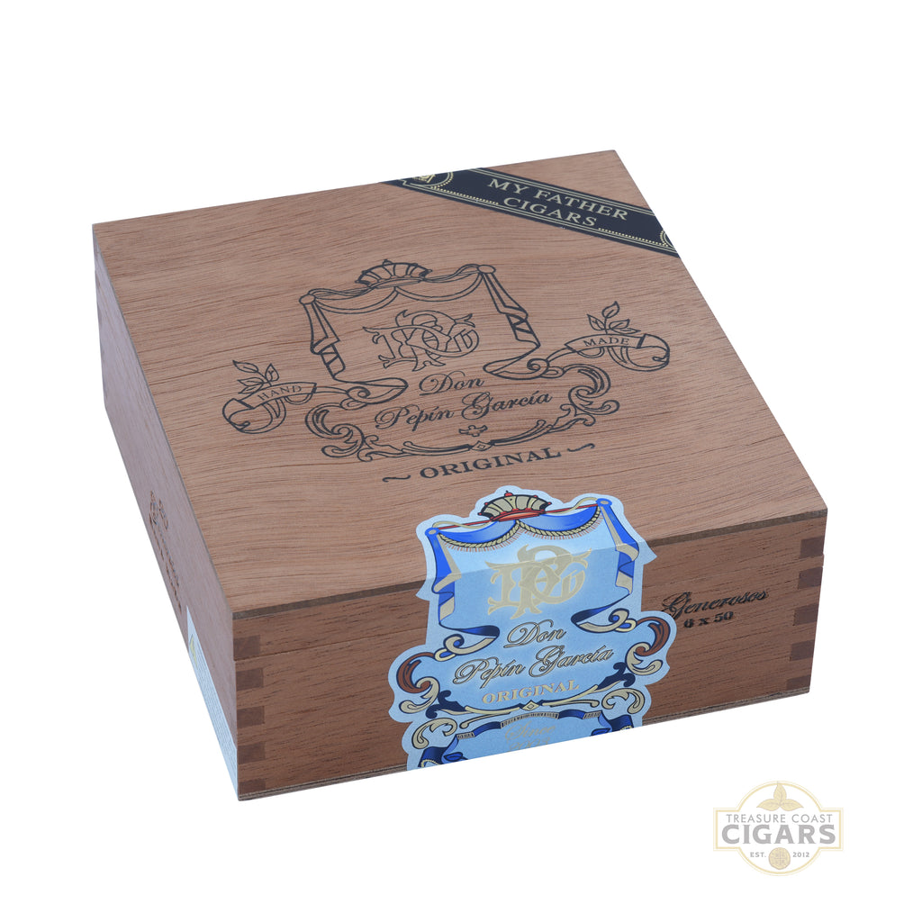 The Don Pepin Garcia Blue Generosos is a celebrated cigar that showcases the mastery and tradition of Don Pepin’s Cuban heritage. Measuring 6 x 50, this medium-to-full bodied corona gorda is expertly handcrafted in Nicaragua with a premium blend of Nicaraguan long-fillers and a rich Nicaraguan Corojo Oscuro wrapper. Upon lighting, aficionados are greeted with Don Pepin’s signature pepper blast, which gradually evolves into a refined balance of earth, cedar, leather, and subtle cocoa notes. Hints of spice and roasted coffee weave throughout the experience, offering a complex yet harmonious profile. The Generosos is known for its impeccable construction, delivering an even burn and effortless draw from start to finish. Bold, elegant, and deeply satisfying, this cigar is a testament to the artistry of the Garcia family and a must-try for enthusiasts seeking authentic Nicaraguan flavor crafted with Cuban tradition.