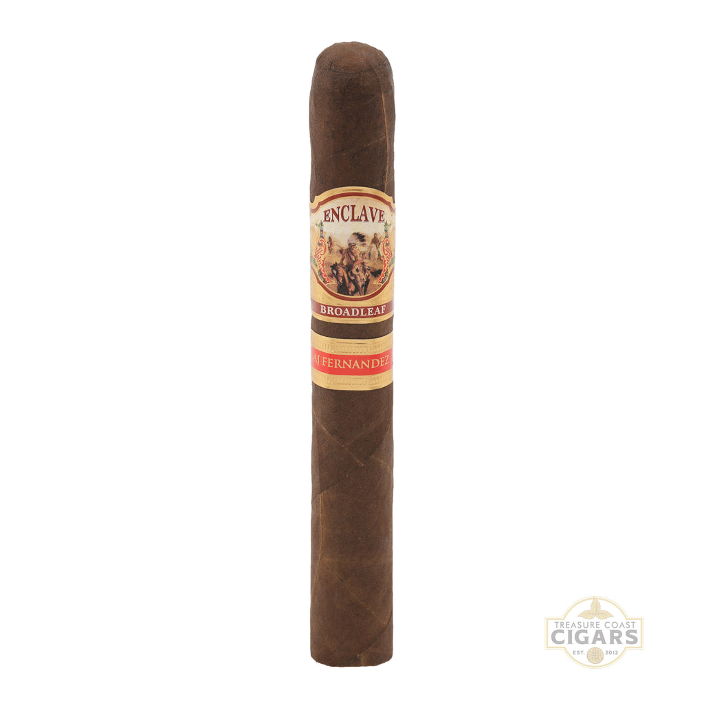 The Enclave Broadleaf Toro by AJ Fernandez is a robust, full-bodied cigar that showcases the bold character of its dark Connecticut Broadleaf wrapper. This 6 1/2 x 54 vitola strikes an ideal balance, offering a generous smoking time while maintaining harmony between strength and flavor. Each draw reveals rich notes of dark chocolate, espresso, and earthy sweetness, underscored by black pepper and hints of leather. The Nicaraguan binder and fillers bring depth and complexity, weaving in touches of spice and a creamy texture that round out the experience. Expertly rolled at AJ Fernandez’s renowned Estelí factory, the Enclave Broadleaf Toro demonstrates flawless construction, an even burn, and a long, satisfying finish. Perfect for seasoned smokers who appreciate intensity without sacrificing balance, this cigar pairs beautifully with bourbon, coffee, or a dark stout. Available at Treasure Coast Cigars, the Enclave Broadleaf Toro invites you to enjoy a smoke that is as powerful as it is refined.