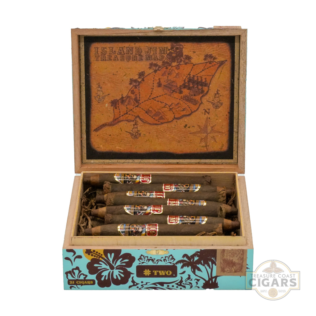 Island Jim #2 Cigars captivate with a paintbrush-like appearance, featuring, a pencil-point cap similar to a #2 pencil, and a Maduro tip. The vibrant band showcases brand owner, Jim Robinson. From the first draw, sweet spice blends with rich chocolate and strong tobacco, joined by leather, nut, and cream notes. The flavors persist, pause briefly mid-smoke for a palate cleanse, then return with intensity in the final third. This cigar feels like smoking two in one, offering a unique, complex experience that must be smoked to be fully understood.