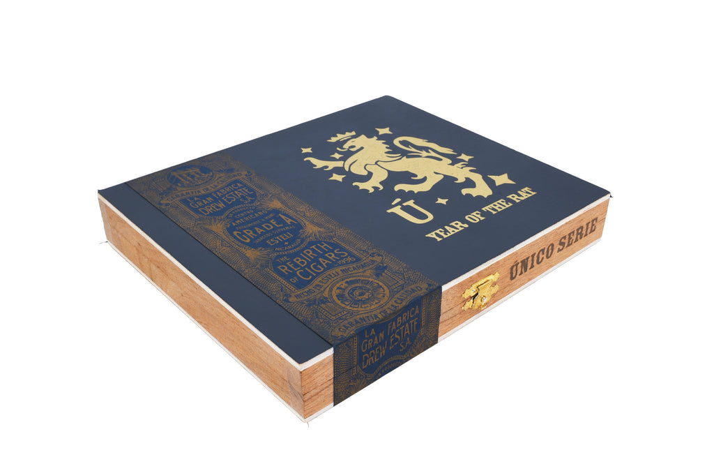 Introducing the Liga Privada Unico Serie Year of the Rat, a highly anticipated annual release from Drew Estate, crafted to celebrate the Chinese New Year. Handmade at La Gran Fabrica Drew Estate in Nicaragua, this full-strength 5.5 x 46 Corona features a USA Connecticut maduro wrapper with a pigtail cap, draped over a Brazilian binder and aged Honduran and Nicaraguan long-filler tobaccos. Each cigar is sheathed in a striking gold foil wrapper which creates an eye-catching presentation. Expect a full bodied experience with bold notes of leather, anise, nutmeg, spice, and pepper, balanced by a natural tobacco sweetness. Extremely limited in supply and in high demand, this cigar is a must-have for enthusiasts. Order your box of the Liga Privada Unico Serie Year of the Rat from Treasure Coast Cigars today, if you can snag them in time, and savor a truly exceptional smoking experience.