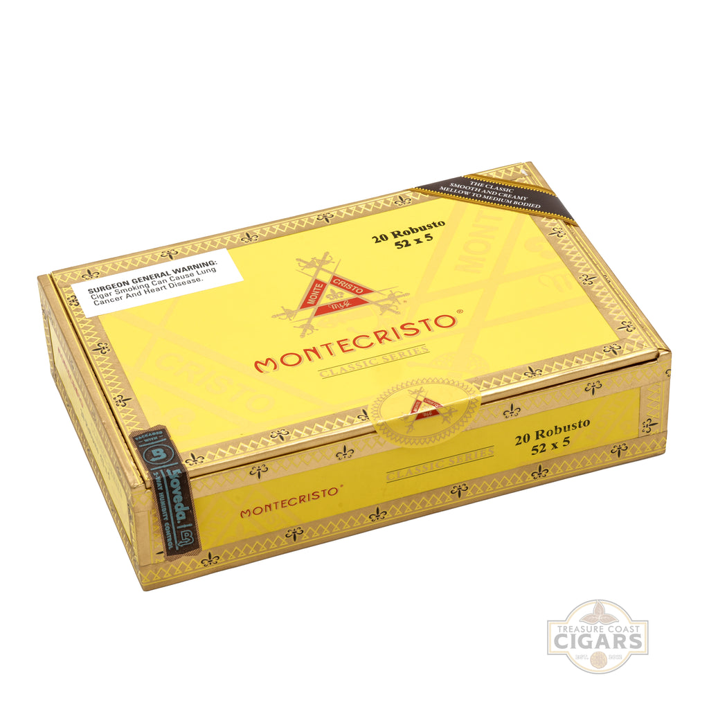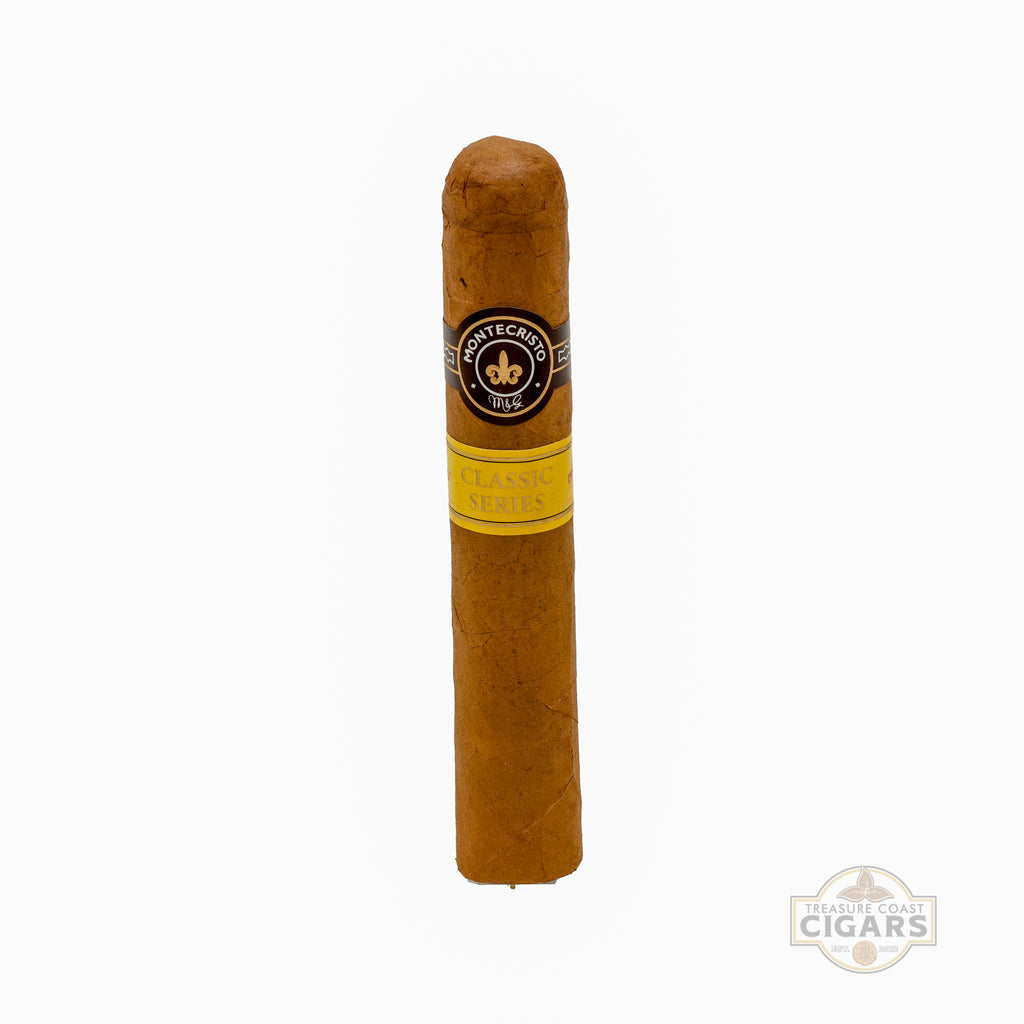The Montecristo Classic Robusto is a cigar that highlights the legendary brand’s commitment to elegance and tradition. Measuring 5 x 52, this robusto is draped in a flawless Connecticut Shade wrapper that lends a golden, silky appearance and sets the stage for a refined smoking experience. Beneath, a Dominican binder and a select blend of Dominican long-fillers create a smooth, balanced profile that has earned the Classic line its celebrated reputation. From the first puff, expect mellow yet flavorful notes of cedar, toasted almonds, and subtle spices, all accented by a creamy sweetness that carries through to the finish. Mild to medium in body, the Montecristo Classic Robusto is approachable enough for new smokers, yet sophisticated enough to satisfy seasoned aficionados who appreciate nuance and consistency. With its impeccable construction and timeless flavor, this cigar is a perfect companion for any occasion where quality and refinement are a must.