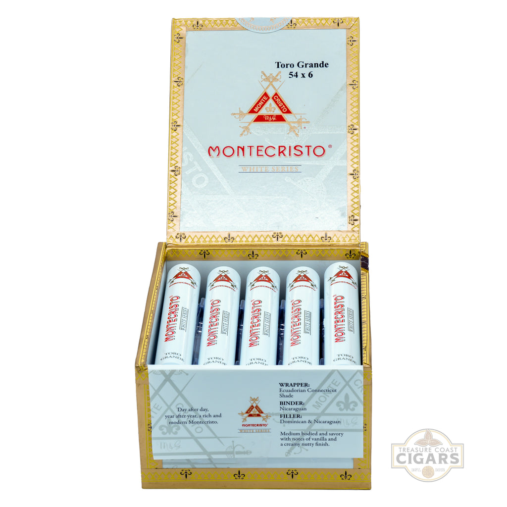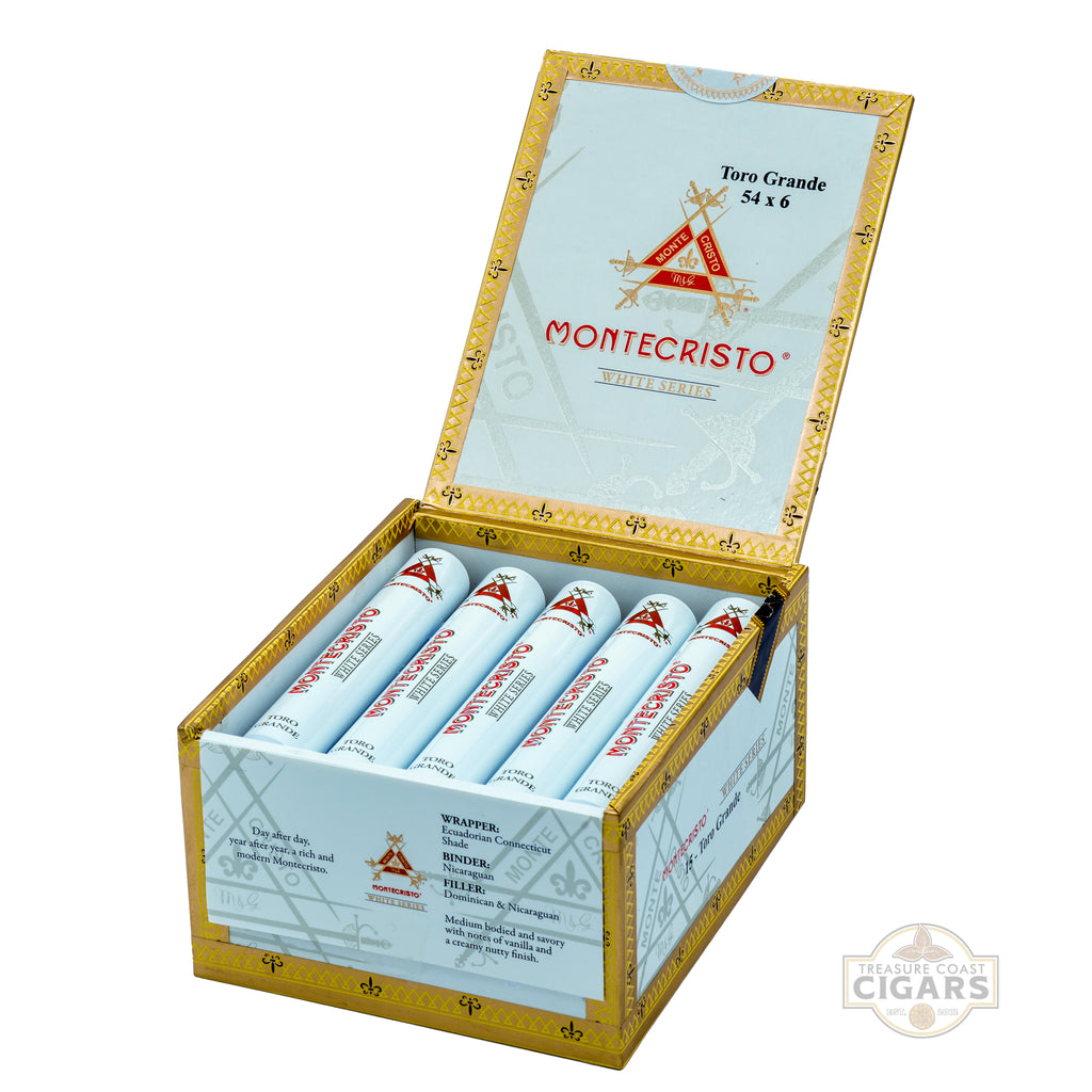 The Montecristo White Label Toro Grande is a luxurious cigar that delivers elegance in both flavor and craftsmanship. Measuring 6 x 54, this refined smoke is wrapped in a flawless Ecuadorian Connecticut Shade leaf that gives it a silky, golden appearance. Beneath lies a Nicaraguan binder and a balanced blend of Dominican and Nicaraguan long-fillers, creating a smooth, mild to medium-bodied profile that appeals to both seasoned aficionados and newcomers alike. Each draw reveals creamy notes of toasted almonds, sweet cedar, and a touch of warm vanilla, with subtle hints of spice adding depth to the experience. Known for its effortless draw and slow, even burn, the Toro Grande offers over an hour of sophisticated enjoyment. Perfect for celebratory occasions or relaxing evenings, the Montecristo White Label Toro Grande upholds the brand’s legendary reputation for quality and refinement, making it a staple in any humidor.