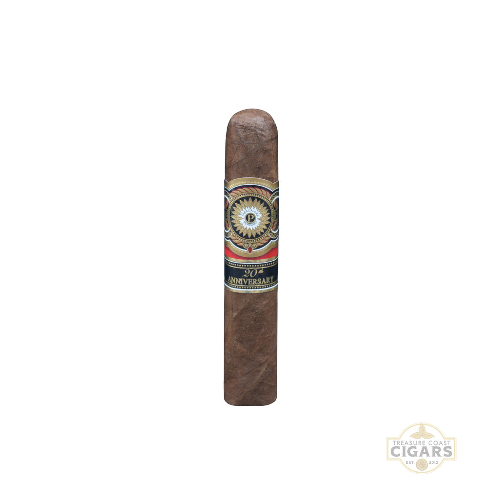 The Perdomo 20th Anniversary Sun Grown Robusto is a 5 x 56 celebration of two decades of masterful cigar-making. Wrapped in a rich, dark Nicaraguan Sun Grown leaf, this cigar exudes natural sweetness and a vibrant, bold flavor profile that reflects Perdomo’s dedication to quality and craftsmanship. Inside, a meticulously blended mix of long-fillers from Estelí, Condega, and Jalapa creates a full-bodied yet balanced smoke. From the first draw, the 20th Anniversary Sun Grown Robusto delights with notes of cedar, cocoa, espresso, and a hint of pepper, all layered with smooth, earthy undertones. Expertly rolled for an even burn and effortless draw, this cigar delivers consistency, complexity, and refinement in every puff. Perfect for both seasoned aficionados and those seeking a premium Nicaraguan smoke, the Perdomo 20th Anniversary Sun Grown Robusto honors the brand’s legacy while offering a rich, flavorful experience. Available now at Treasure Coast Cigars.