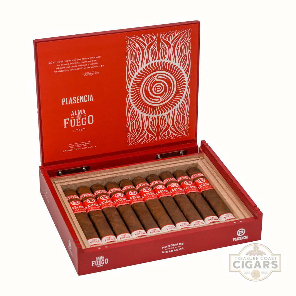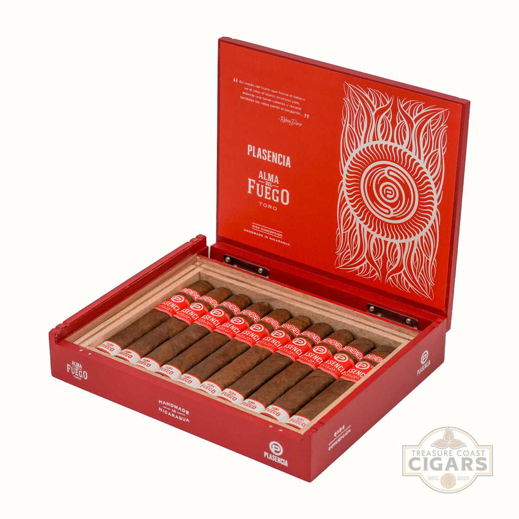 Alma del Fuego ("Soul of Fire") is a fiery Nicaraguan puro built around tobaccos from Ometepe, a volcanic island known for producing bold, spicy leaves. Full-bodied and pepper-forward, it also reveals underlying sweetness and notes of cinnamon, wood, and red fruit. With a unique flavor that highlights Nicaragua’s volcanic soil, this blend is perfect for those who love cigars with attitude and character. The Vitola showcases its slow-burning power that lasts.
