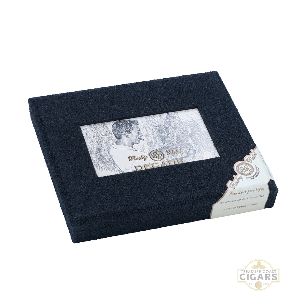 The Rocky Patel Decade Torpedo and elegant 6 1/2 x 52 cigar designed for aficionados seeking a full-flavored, experience. The Decade Torpedo offers a striking appearance and a silky, creamy texture that immediately signals the quality within. Inside, a carefully aged blend of Nicaraguan and Honduran long-fillers, paired with a premium binder, creates a complex, full-bodied profile with depth and balance. The torpedo shape focuses the smoke, intensifying the layered flavors of rich espresso, dark chocolate, toasted cedar, and subtle spice, while a touch of natural sweetness lingers on the finish. Its tapered head allows for a concentrated draw, highlighting the blend’s richness and sophistication. With impeccable construction, consistent burn, and an effortless draw, the Rocky Patel Decade Torpedo exemplifies the brand’s dedication to excellence. Available at Treasure Coast Cigars, it is ideal for those seeking a refined, memorable smoking experience.