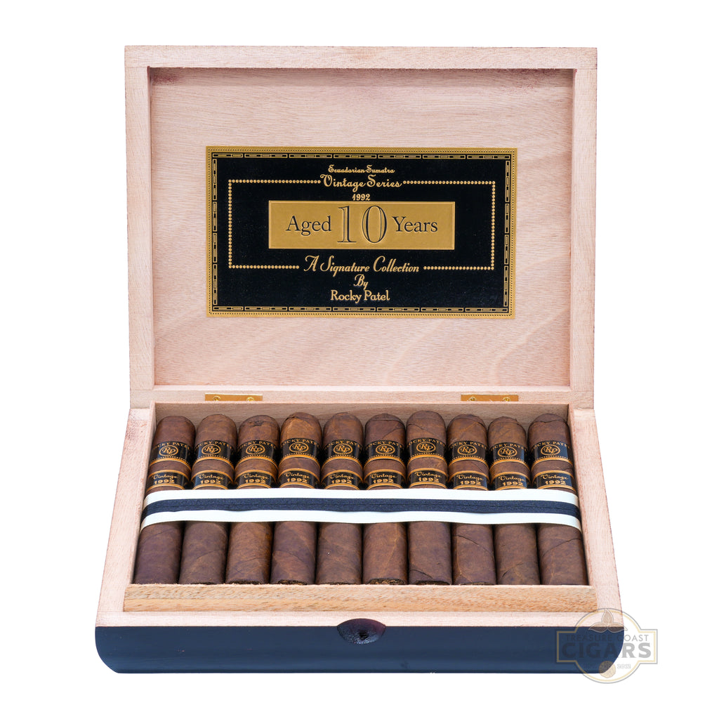 The Rocky Patel Vintage 1992 Robusto is a premium cigar that exemplifies refined craftsmanship and timeless flavor. Meticulously handcrafted in Honduras, this 5 1/2 x 50 robusto features a stunning 10-year-aged Ecuadorian Sumatra wrapper, which lends a rich and complex character. Beneath the silky wrapper lies a balanced blend of Dominican and Nicaraguan long-fillers, supported by a Nicaraguan binder that enhances structure and depth.