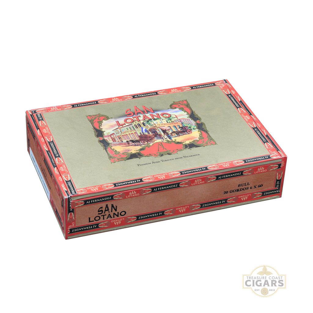 The San Lotano Bull Gordo by A.J. Fernandez is a commanding cigar designed for those who enjoy bold flavors in a larger, longer-lasting format. Measuring 6 x 60, this hefty vitola is wrapped in a silky Ecuadorian Sumatra leaf that surrounds a robust core of select Nicaraguan long-fillers. True to its name, the Bull Gordo charges out of the gate with strength and character, delivering deep notes of earth, wood, and leather, underscored by rich accents of espresso, black pepper, and a touch of natural sweetness. The larger ring gauge allows for a cooler, more gradual burn, enhancing the cigar’s complexity and making each puff flavorful and satisfying. Construction is flawless, with a smooth draw and consistent burn that showcases A.J. Fernandez’s renowned craftsmanship. Perfect for aficionados who want a bold, extended smoking experience, the San Lotano Bull Gordo is a powerhouse blend proudly available at Treasure Coast Cigars.