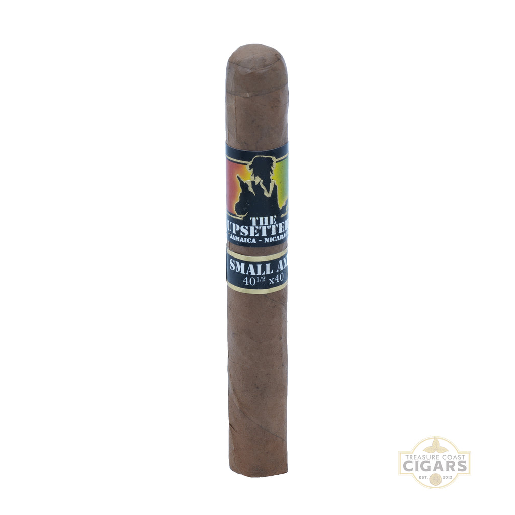 The Upsetters Small Axe is a bold and flavorful 4 1/4 x 40 cigar that delivers a compact yet memorable smoking experience. Available at Treasure Coast Cigars, this standout offering features Foundation Cigar Company’s rare Jamaican Cow Tongue tobacco, known for its distinctive herbal sweetness and aromatic complexity. Wrapped in a silky Ecuadorian Connecticut Shade, Small Axe provides a smooth, mild to medium-bodied profile with notes of creamy cedar, subtle vanilla, and gentle spice, perfectly complemented by the earthy and floral undertones from the Jamaican leaf. Nicaraguan fillers give the cigar structure, depth, and a touch of peppery zest, creating a balanced smoke that evolves beautifully from first draw to the last. True to the rebellious, reggae-inspired spirit of The Upsetters line, Small Axe embodies individuality, cultural pride, and the rhythm of Jamaica’s musical heritage. This compact yet dynamic cigar offers a flavorful, unforgettable experience for both seasoned aficionados and adventurous newcomers alike.